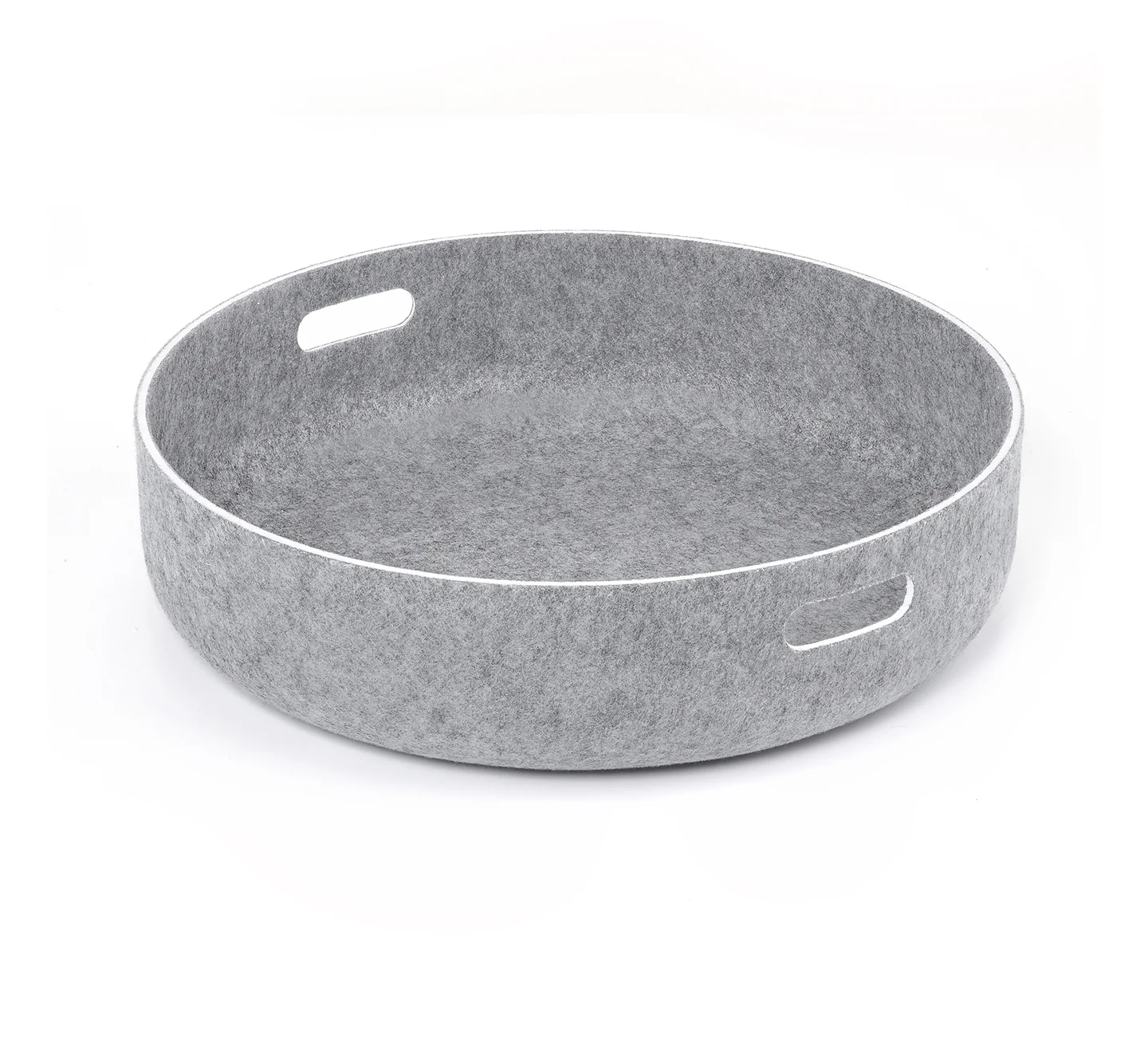 Each Cesto basket is moulded from felt fibres that are mostly made of recycled PET bottles. The sustainable, environment-friendly material holds it’s shape and has a soft yet textural look and feel.