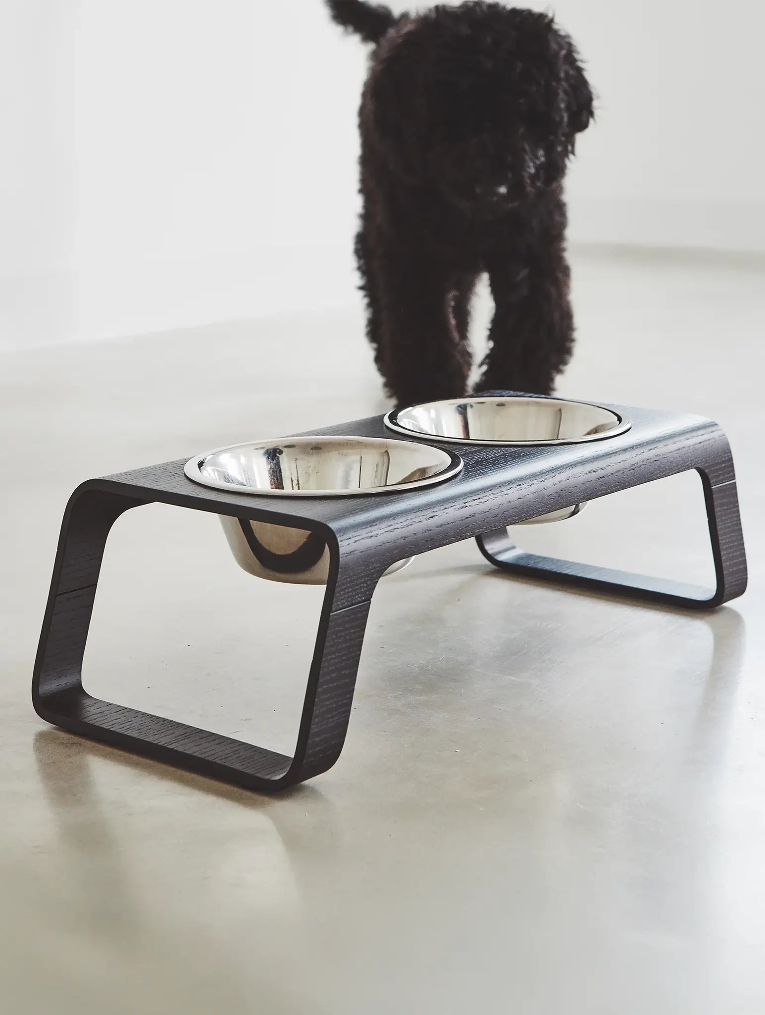 Cane Desco, Hondenvoerbak met Roestvrijstalen Bakjes, Essen zwart Gebeitst