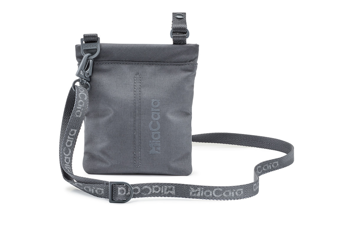 Voor een soepele en stressvrije wandeling bevestigt u eenvoudig de bijpassende Sacchetto poepzakjesdispenser uit de MiaCara Travel collectie aan de logo D-ring van het snoepzakje.