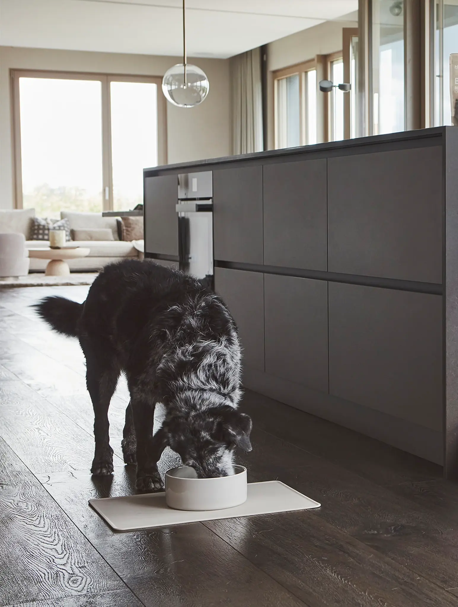 Om de eetplek van je hond compleet te maken, raden we de in kleur bijpassende Tova-bakmat aan als basis. Deze geeft de voerbakken een stevige grip en beschermt je vloer tegen plassen water en voedsel.